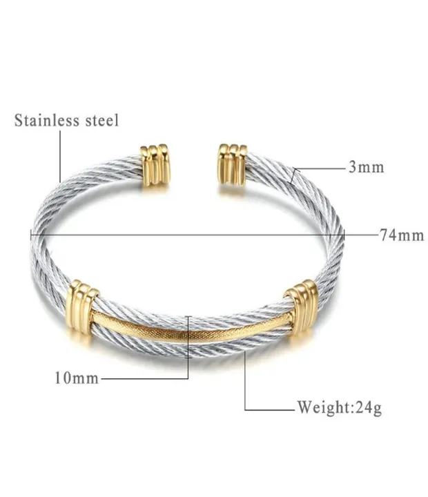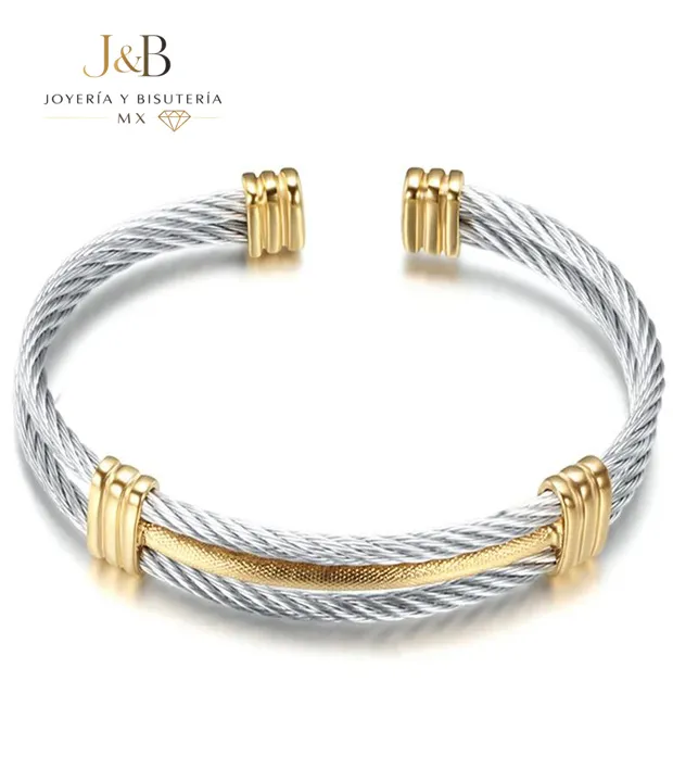 Este brazalete abierto destaca por su diseño de cable trenzado triple, fusionando una estética industrial de alto impacto con la elegancia del acero quirúrgico.